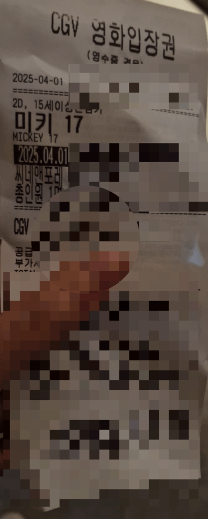 아래는 내가 본 영화 입장권